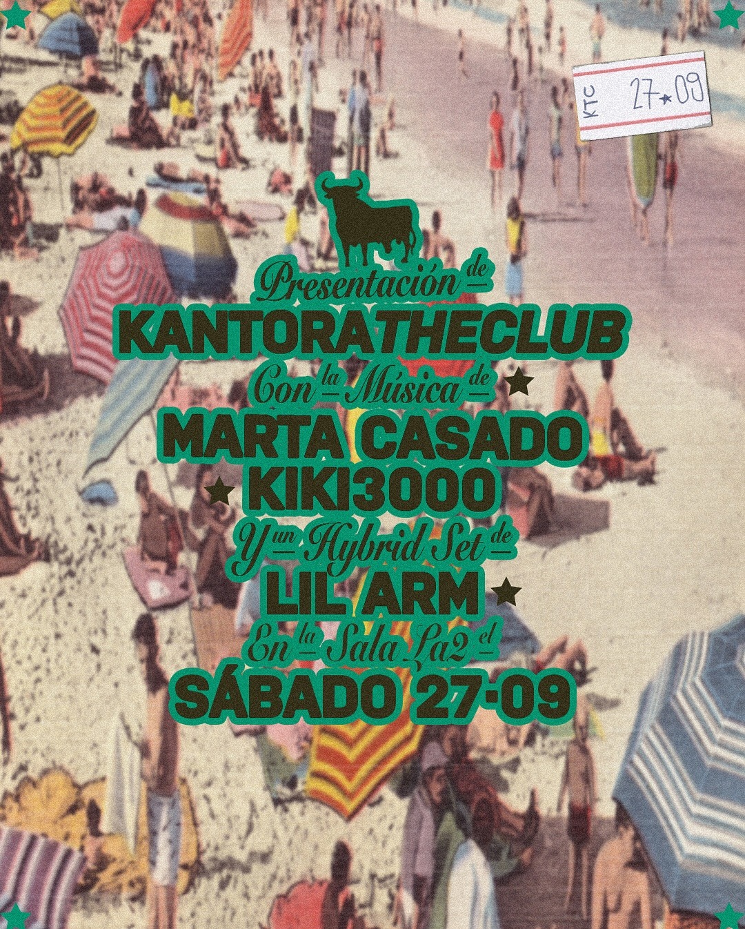 Por el paseo marítimo un día y en el souvenir más cercano se nos ocurrió la idea de traeros esta postal para que se la mandes a tus amigos, a tu madre, a tu tía, a tu prima hermana, a quien tú quieras encontrarte el próximo 27 de Septiembre en Sala La 2.